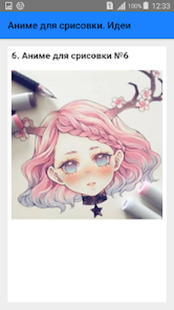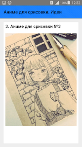 Aplikacja 'Anime for sketching. Ideas' to doskonałe narzędzie dla miłośników japońskiej animacji, oferujące szeroki wachlarz obrazów do szkicowania. Użytkownicy mogą korzystać z bogatej kolekcji postaci anime, które wyróżniają się charakterystycznym stylem rysunku, szczególnie w przedstawieniu oczu. Dzięki intuicyjnemu interfejsowi, aplikacja umożliwia łatwe przeglądanie i wybieranie inspiracji do rysunków.